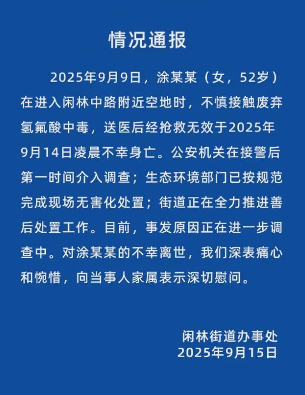 9月14日晚上,网民“ Liv Yuanbao”发布了一条消息,说他的母亲在上午9点行走时不小心走进化学氢酸,无法在该地区行走。被送往医院后,他被诊断出患有氢氟酸中毒。心力衰竭和呼吸逮捕从下午3点开始。被送到ICU后,他那天晚上经历了心肺衰竭,后来死亡。 In this regard, the officer issued an related report to the situation.该通知已阅读:2025年9月9日,Tu Moumou(52岁的女性)意外进入了Xianlin Middle Road附近的开放空间,并有毒中毒。被送往医院后,他于2025年9月14日上午被救出后去世。 Public security organs mediated in investigation as soon as possible after maccepting the alarm;生态环境部根据标准完成了现场无害处置; The streets fully promote disp后来。目前,该事件的原因正在进一步调查中。街道办公室发行时,水氟酸到底是什么?作为氟化氢气的水溶液,氢氟酸是一种无色液体,具有烦人的气味。由于性质极为黑暗,它可以腐蚀金属,玻璃和含有硅的成分,例如石英。因此,在实验室中,通常将氢氟酸密封并储存在塑料瓶中,需要放置在凉爽的地方。在手术过程中,由于氢氟酸或液体蒸汽接触皮肤,它会导致严重燃烧,从而导致深度损害,甚至在严重的情况下危及生命,通常在实验室操作期间穿着专业保护设备以防止接触和吸入。广州每日新华社的记者检查了中华人民共和国应急管理部的相关文件。在“ Hazardou目录S Chemical”(2015年版),“编号”。 1650“查询被称为“氢氟酸溶液”,证明该产品实际上是一种危险的化学化学物质。根据“化学分类和标记规格”的描述,根据其风险分类的描述,氢氟酸属于“慢性”的“慢性”风险水平的“慢性酸性”,即最大的中毒和皮肤接触的最大酸度,这是高度的酸性。行业和日常生活,尤其是在半导体,玻璃,金属,氟化学物质和其他行业中,在这些行业中,水氟酸通常会暴露于水力发电酸中。S仍在调查中,危险化学管理的问题再次恢复了深刻的思想。实际上,我的国家一直针对此类化学物质有相对严格的标准,尤其是用于标准使用,使用,管理和处理工业领域和实验室操作期间剩余化学物质的标准。 gahowever,在一天至今的生活中,在管理各种有害化学物质(例如氢氟酸)的管理中仍然存在一些漏洞。此前,广州每日新华社的记者对危险化学物质的“在线购物”干扰对“如何出售”到“危险化学物质”进行了深入的调查。 9月15日晚上,记者搜索了在线购物平台上的“氢氟酸溶液”,“ HF水溶液”,“氢氟酸清洁剂”,但该页面可以直接从出售的通常的解决方案中跃升,价格为8.-42 Yuan,以及某些人的销售。标准HYD可以在平台上购买的Rofluoric酸溶液。在产品页面上,许多商人提到了其操作,并写了“清洁犯罪镜,彩虹斑点,3C标志性玻璃,瓷器,瓷器,瓷器,陶瓷,石材,使用的金属,索取金属和去除氧化物的表面”等口号。但是,当产品在页面上引入产品时,它只是说“戴手套和棉签将其浸入;请勿直接接触皮肤。如果它与皮肤接触,请立即用干净的水洗涤。它还表明拒绝协议是,消费者默认情况下会在拍照后使用化学药品使用它。不仅是这样,我们还可以记住他们对使用化学剂的利格巴格的使用;如何在使用化学剂后处理其余的化学物质,这是我们更加con的con凝结着。化学老师说,在与记者的采访中。在这方面,相关部门和平台应加强化学物质和化学剂的管理:在可以公开交换化学供应的化学物质供应剂上,哪种化学物质供应是危险的,并且可能不会出现在平台上,并且在平台上不出现在2025年10月11日,包括“危险的人的化学安全”。广州日 - 日)