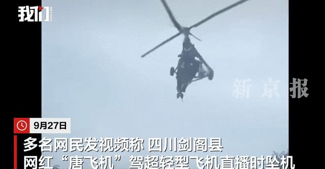 9月27日,许多网民发布了视频,称流行的互联网在贾安县(Jiange County)的“唐飞机”(Tang Aircraft),四川驾驶超光飞机时坠毁。屏幕表明飞机突然失去控制并跌倒,然后着火并燃烧。 “唐·费”(Tang Fei)位于 @沪新新闻记者中,事故导致“唐·费”(Tang Fei)死亡的村庄的村庄干部,不幸的是,一家人去了事故现场面对葬礼。 @Beijing新闻记者从贾安格县Fun仪馆获悉,事故现场收到了尸体。贾安县政府办公室的记者发现,许多部门都在探讨。过去,“ Tang Aircraft”引起了许多同轴双s购买超轻型飞机的关注。互联网名人“唐飞机”飞行时坠毁