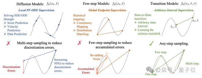 蒂姆团队为Qubits做出了贡献|官方帐户Qbitai Generative AI具有快速和良好的状态,社区最终在DIT和Flux系列中实现了相同的稳定扩散。该社区探索了许多技术技术,以加速一代速度并提高一代质量,但是它始终是在扩散模型的两条路线和几个步骤模型的两条路线周围开发的,并且需要妥协一些自然的缺陷。这是训练目的引起的“质量发展”和“速度形成”之间矛盾的根源。管理无限性局部动力学(PF-OME),或者仅知道边界间隔的端点映射。两者都有自然的限制。一项新的研究表明,一种称为过渡模型(TIM)的新范式试图启动RomanceTan的解决方案。它留下了“直接现场速度”研究模型的传统爆炸训练或几个步骤“端点映射”和取而代之的是,州的完整模型直接在任何两个小时的点之间完全转移了状态。这意味着Tim理论上支持任意步骤的奴隶制,并可以通过多段晶粒细化进行分解生成过程。什么是移动模型?为什么“ PF-OME”或“概率分布匹配”不是生成模型的良好训练目标?从迭代式的成分中,它可以通过学习本地PF-od矢量向量,并且仅监督训练时间的永恒小步骤的直接动态,从而通过迭代式贬义来获得较高的忠诚度。采样时,不应使用很小的步骤或高阶多步求解器来压缩离散错误,从而导致高NFE。例如,即使生成小步骤(例如一致性/快捷方式/蒸馏/平均流)也很快,因为没有描述中间动力学,在提高步骤后,返回很快就会饱和,并且他们经常发现“质量ceilings". Adding the number of steps will no longer bring benefits, and the upper limit of generation's ability is less than the diffusion model. These natural defects come from the introduction of administration signals during model training, either resolving local PFE equations, or matching fixed possibility distribution; In other words, during the generation process, the model makes predictions nG grain grain administered with clean data, which directly determines the discrete error and upper limit of generation quality in the process of understanding. So, for生成的模型是基于扩散模型的训练目标和几个步骤模型的局限性,可以获得以下本地审查(无限小)管理:PF-OME/SDE类别的目的仅适用于即时的动态(δT→0)。采样时应使用EPS,因此NFE非常高;当将步骤按少量数量时,质量将大大落后。因此,对于可以带来高对应物的地方给药信号,应调整时间间隔或单个逐步长度,以更改全局端点给药:蒸馏/平均值/短路类型的几个步骤/一致性/蒸汽。这种类型的目标训练了解固定跨度的端点映射(或平均速度场)。主要的是一步一步“吃”整个轨迹,所以几乎没有步骤。但是,由于“平均水平是整个轨迹”,因此删除了详细的动力学,并且在添加步骤后很难继续改进 - 质量饱和度发生。因此,训练的目的应与沿轨迹的轨迹相同,并具有中间步骤作为单个轨迹的改进,而不是偏离newimprove qua通过更多步骤。因此,培训的目的既可以快速产生(几个步骤),又可以生成高诚实(扩散模型):在“多段轨迹”中,要实现“灵活的单步大小”(任意步长),这是过渡的模型。为了达到推理速度和高质量的忠诚度,需要基本设计才能在“多段轨迹”中实现“灵活的单步尺寸”。这项工作是基于它设计的。过渡模型:将模型训练从矩t扩展到状态建模x_t,x_r的任何两个矩T和r。设计1:实施“灵活的单步尺寸”。对于在给定的两个矩T和R中T和R之间的移动状态,“ thestate转移的一般身份”是通过减轻其方程差来获得的;基于状态转移的整体身份,可以描述州在任何时间间隔的特定转移,而不是作为数字解决。设计2:实施“多阶段 - 阶段完善的轨迹”。多阶段精制轨迹的路径,此方法可以随时直接描述状态的过渡。在本文中建议的TimePat中,“以任何时间间隔,国家与以前的州之间的状态转移的动态方程式”作为培训的目的,它以相同的理解速度和高质量的忠诚度达到了基本设计。传输模型的数学本质是建模即时速度场,极限是立即速度需要时间差距才能接近0。平均流核是为平均速度场进行建模,极限是平均速度失去了局部优化动力学的细节,预先转换的一代质量,并且在传递了几步后几乎是固定的。与前两个不同,转移模型在任何时间传输间隔之间都具有任何状态 - y速度场自然包含立即速度和平均速度;就溶液形式而言,扩散是局部PF-OD的数字解,平均流是局部平均速速度场上的解集,并且传输模型在全局路径上找到了流溶液模式。在特殊情况下,它可能会使平均速度场恶化,并且解决方案流量模式会恶化本地溶液集。作者主要证明了Geneval数据集与文本图像工作,并在各种概念措施(NFE),各种分辨率以及各种水平和垂直比率下进行了转移模型生成的几代:本文发现,转移模型(TIM)的参数大小为865m Calelux.1-Schnell(12b parameter)(12B参数);同时,发电能力的上限也可能超过磁通量。1-dev(12b参数)。因为蒂姆结合了分辨率前分辨率的培训策略(请参阅本文中提出的模型在解决,水平和vetio方面也更加灵活。转移模型的训练和可扩展性的稳定性使转移模型训练可扩展。在传输转移模型的过程中,其训练目的的关键是在$ \ frac {\ mathrm {d} f _ {\ theta^{ - },t,r}}}}}}}}}}}(JVP)上计算网络的导数。 However, JVP puts a basic bottleneck sa scalability: hindi lamang ang mataas na computational overhead, ngunit mas nakakapagpabagabag na umasa sa paatras na awtomatikong pagkita ng kaibhan, na hindi katugma sa mga pangunahing pag-optimize ng pagsasanay tulad ng flashattention at ang ipinamamahaging balangkas na ganap na sharded 
